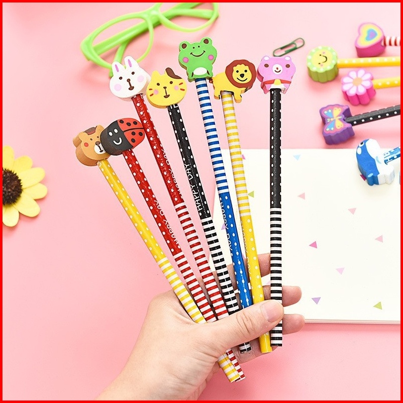 T Y Pensil Karakter Kartun Cute Motif Garis Polkadot Pensil Karakter Penghapus Pensil Lucu Ada Penghapus 3d Pensil Fancy