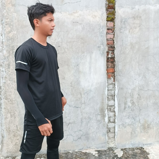 Comochi Setelan Jersey Olahraga dan Celana Olah raga Pria Lengan Pendek Warna Hitam 1 Set