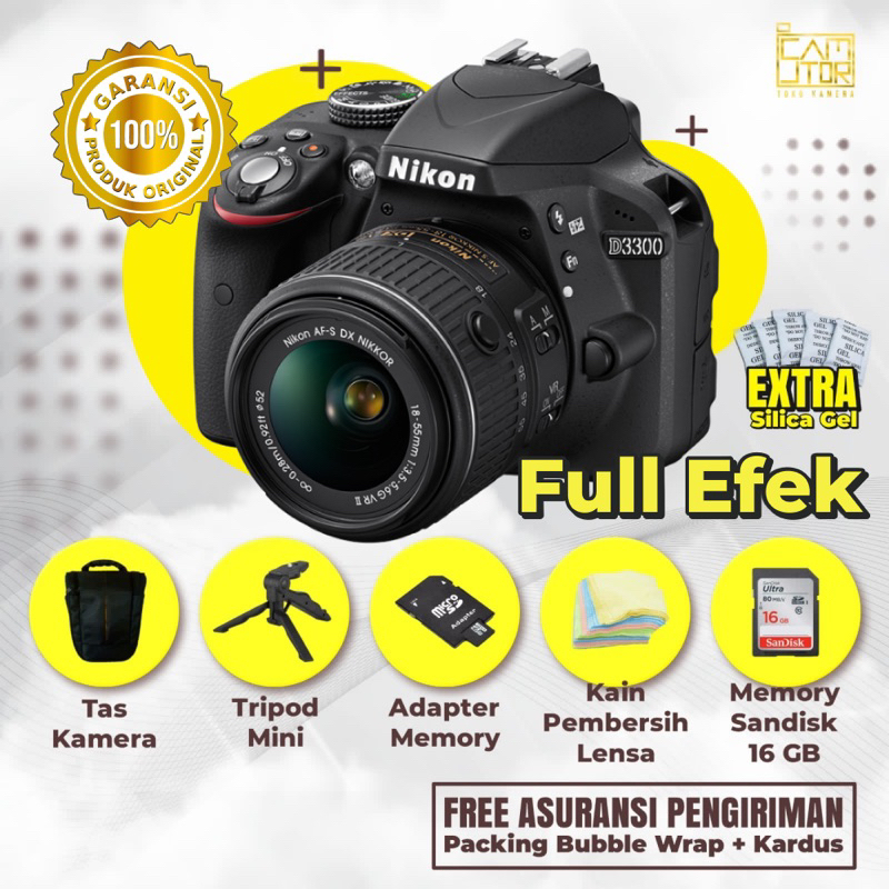 NIKON D3300 LENSA KIT + TAS BARU + MEMORY 16 GB + TRIPOD + TOKO