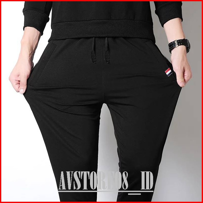 Celana Jogger Bendera Pria Casual Celana Olahraga Panjang Pinggang Elastis Fitnes