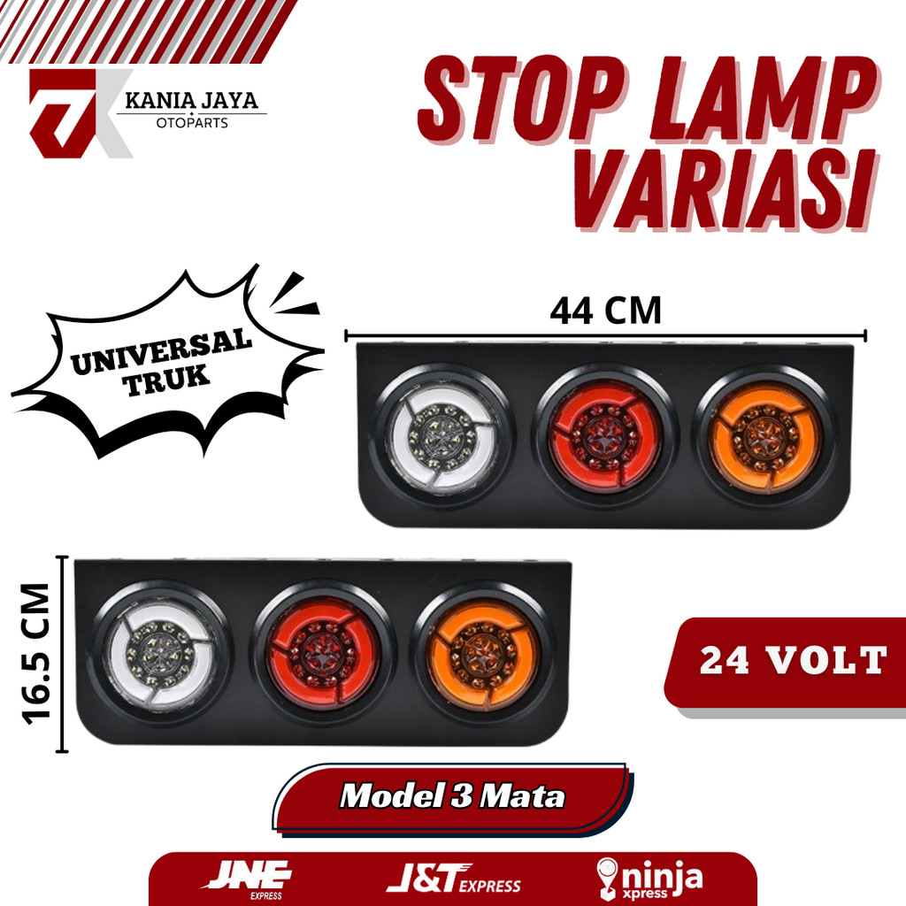 Stoplamp Variasi Mobil Truk 24 Volt / Lampu Belakang Truk Model 3 LED Bulat 1 Set Kiri dan Kanan