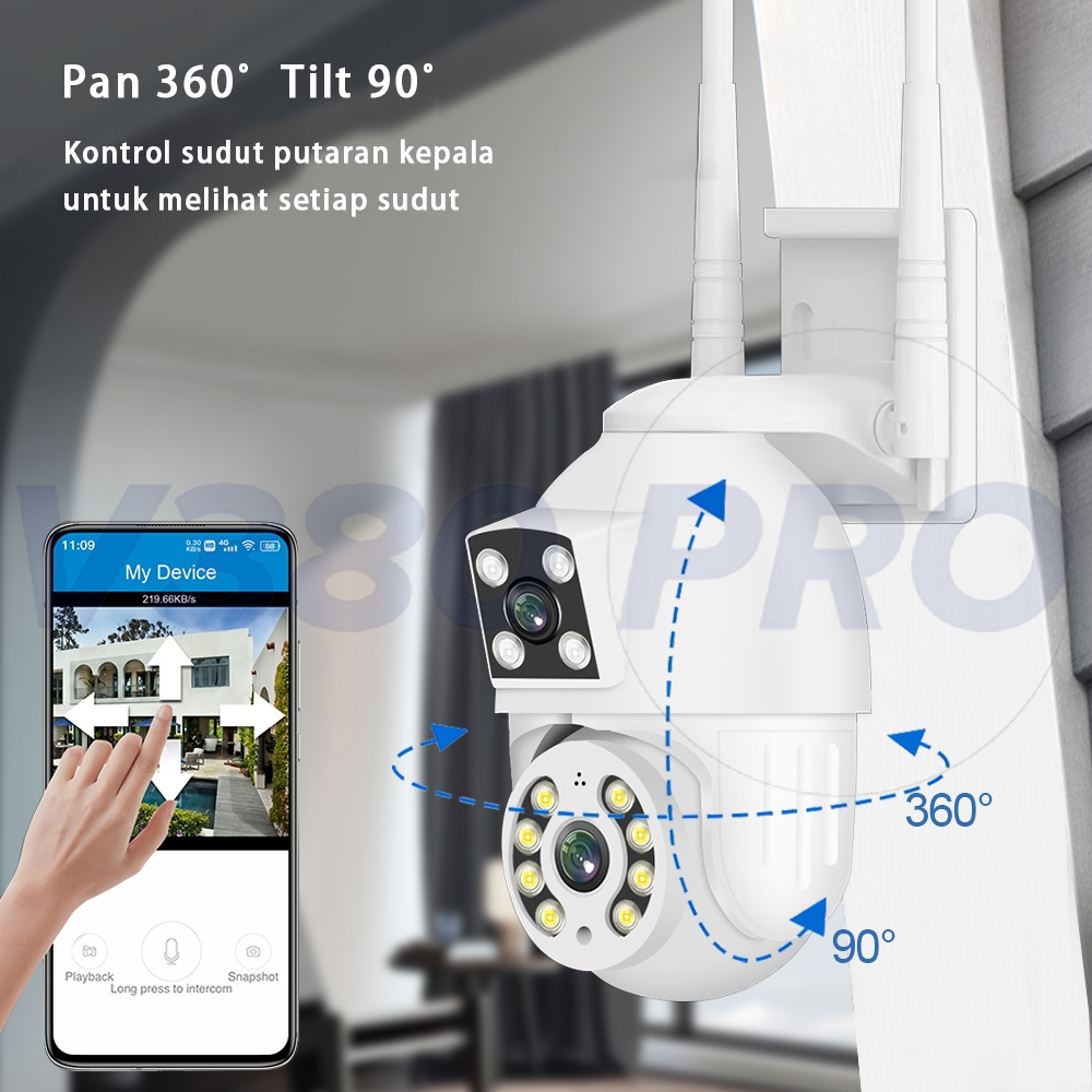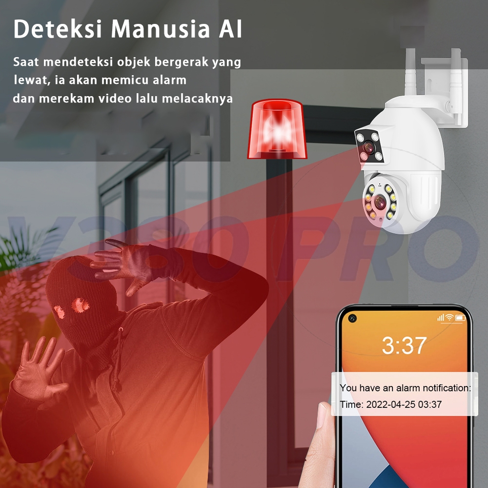 V380 Pro Kamera CCTV 8MP Lensa Ganda Layar Ganda Ai Kamera Pengintai Luar Ran Nirkabel Pelacakan