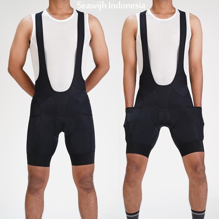 Celana Padding Sepeda Saku Bib Cargo Cheji Side Pocket Aero Race Cycling Gravel Original - Black, S