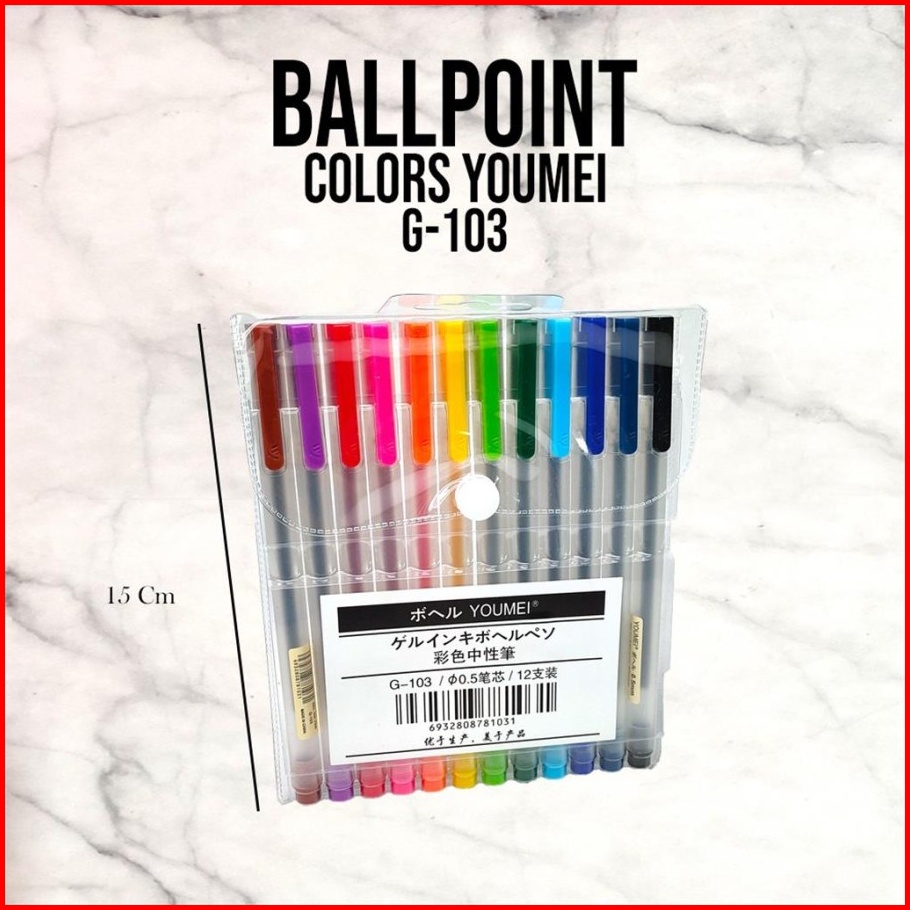 1 Pack Isi 12 Pulpen Pulpen Gel 12 Warna - Youmei G103