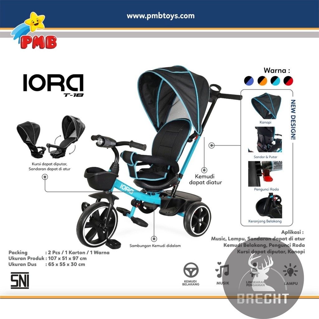Sepeda Anak Roda Tiga Baby Tricycle Kanopi Iora PMB T-18 / T 18/ T18 Original Iora By PMB