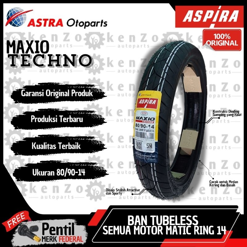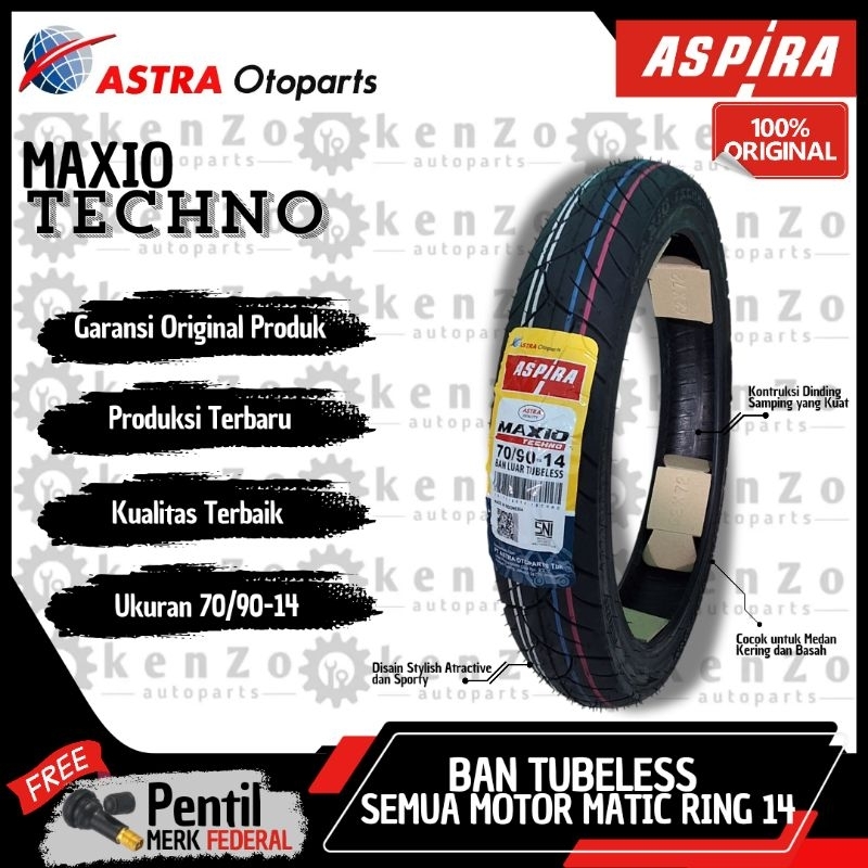 [Original & Baru] [Gratis Pentil] Ban Tubeless Depan Belakang Semua Motor Matic Ring 14 Aspira Maxio Techno Produksi Terbaru 70/90-14 80/90-14 90/90-14