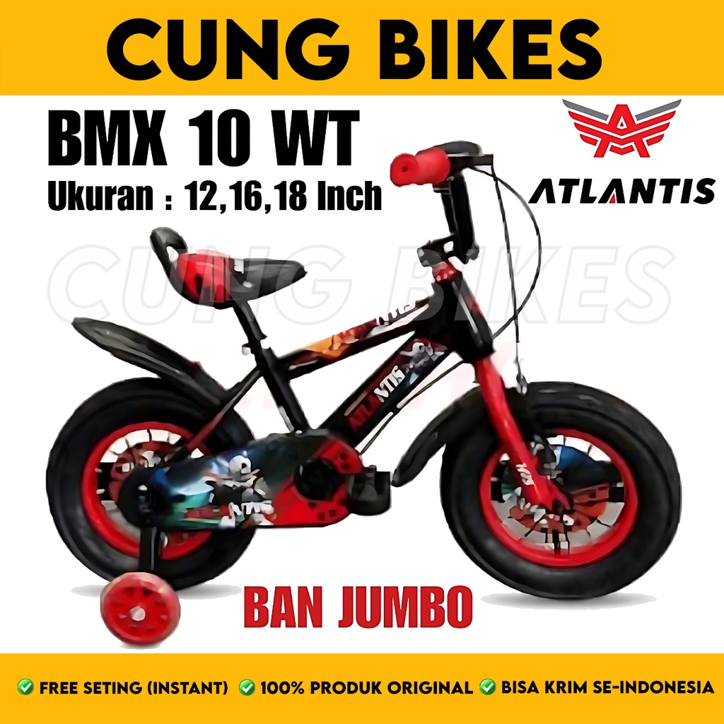 Sepeda Anak Laki BMX Ukuran 12 16 18 Inch ATLANTIS 10 WT Ban Jumbo 3.0