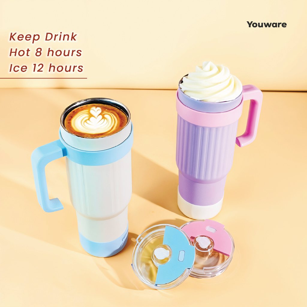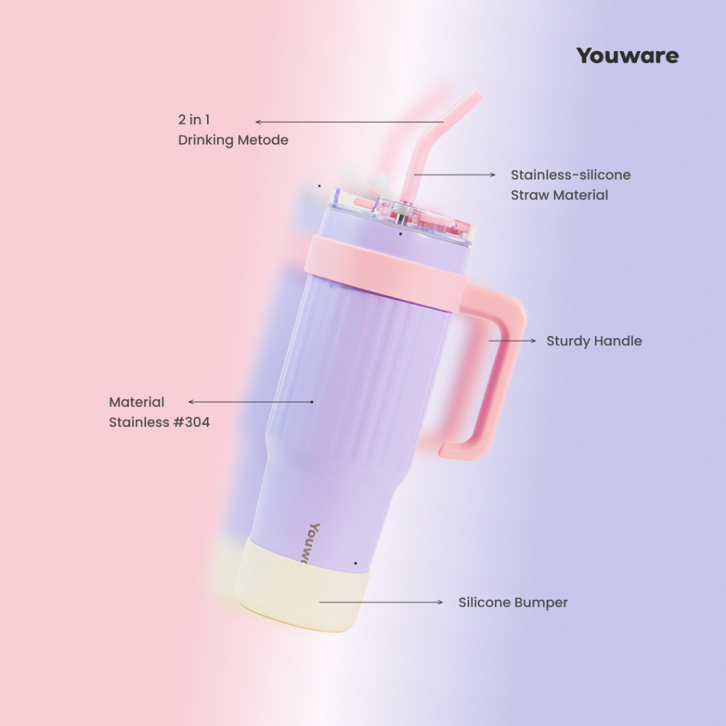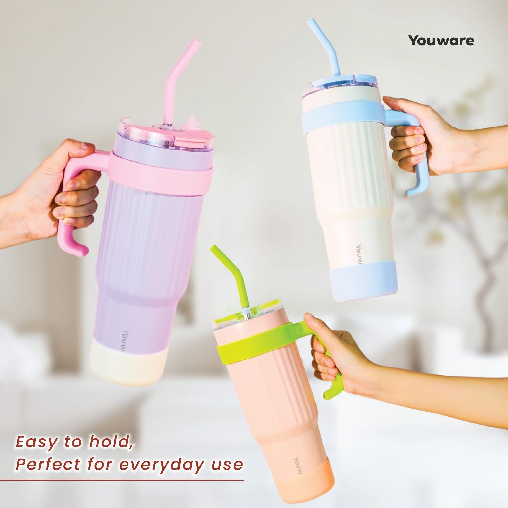Youware - Noire 2.0 Tumbler 1200ml SUS 304 Stainless Steel Aesthetic Tahan Panas Dingin 12 jam gratis botol plastik