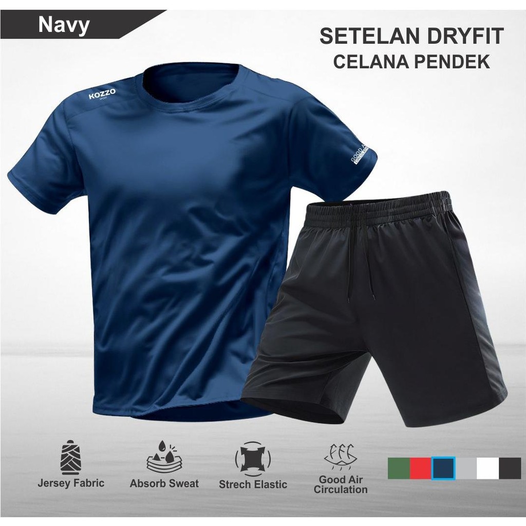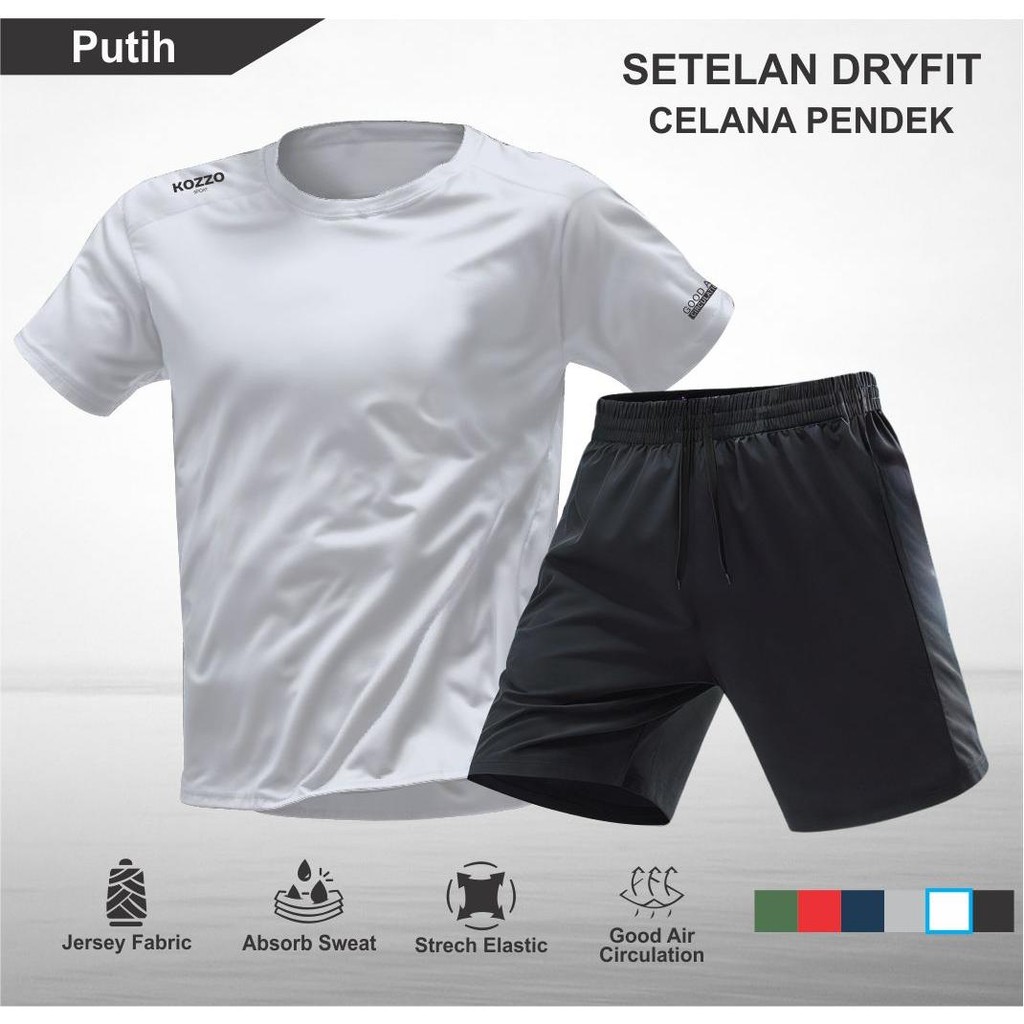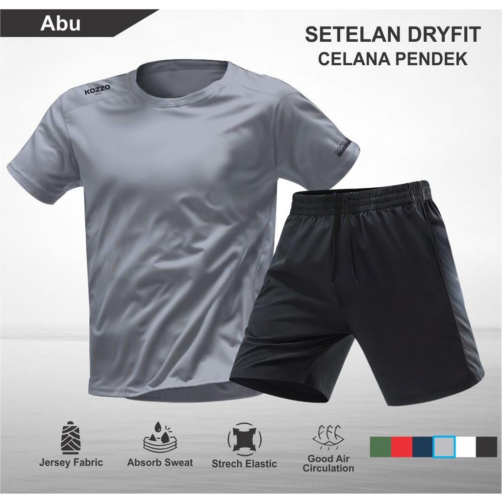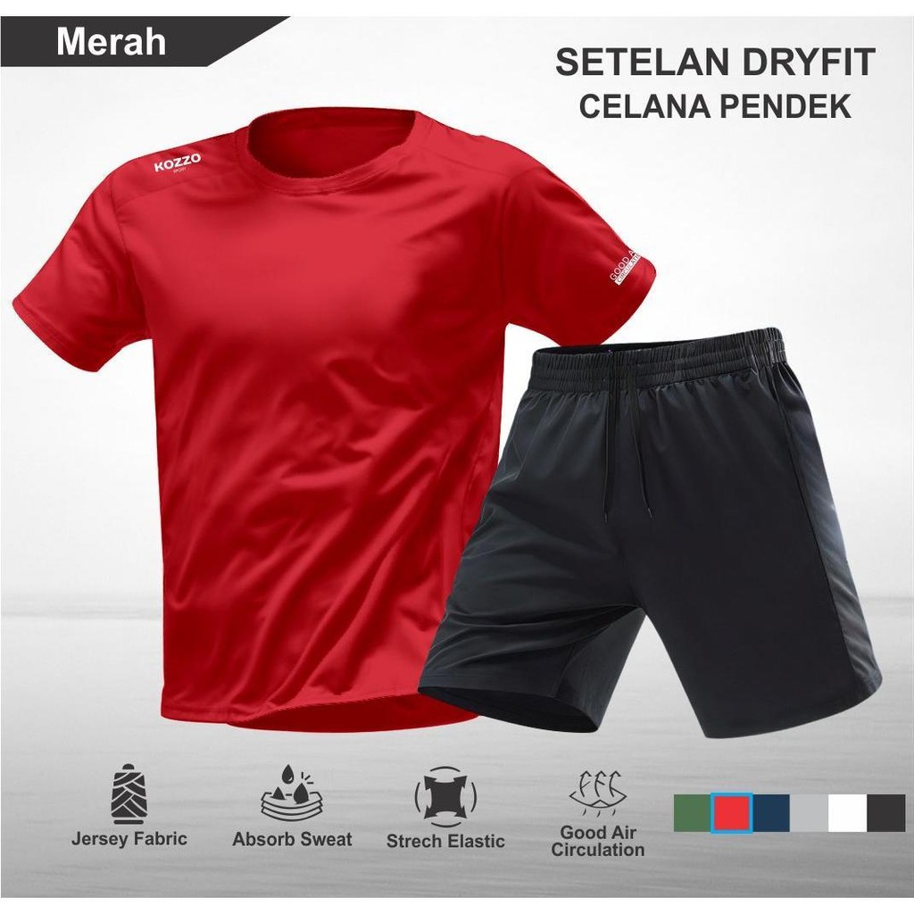 Setelan Running Kozzo – Baju Olahraga Pria Kaos Dry Fit dan Celana Pendek Sport Tanpa Saku