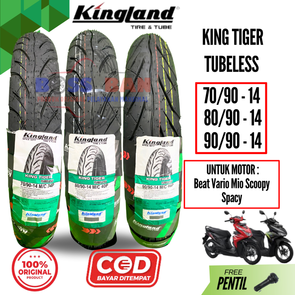 Ban Kingland Tiger Ukuran 70/90 80/90 90/90 Ring 14 Tubeless Original Untuk Motor Matic Beat Vario Mio