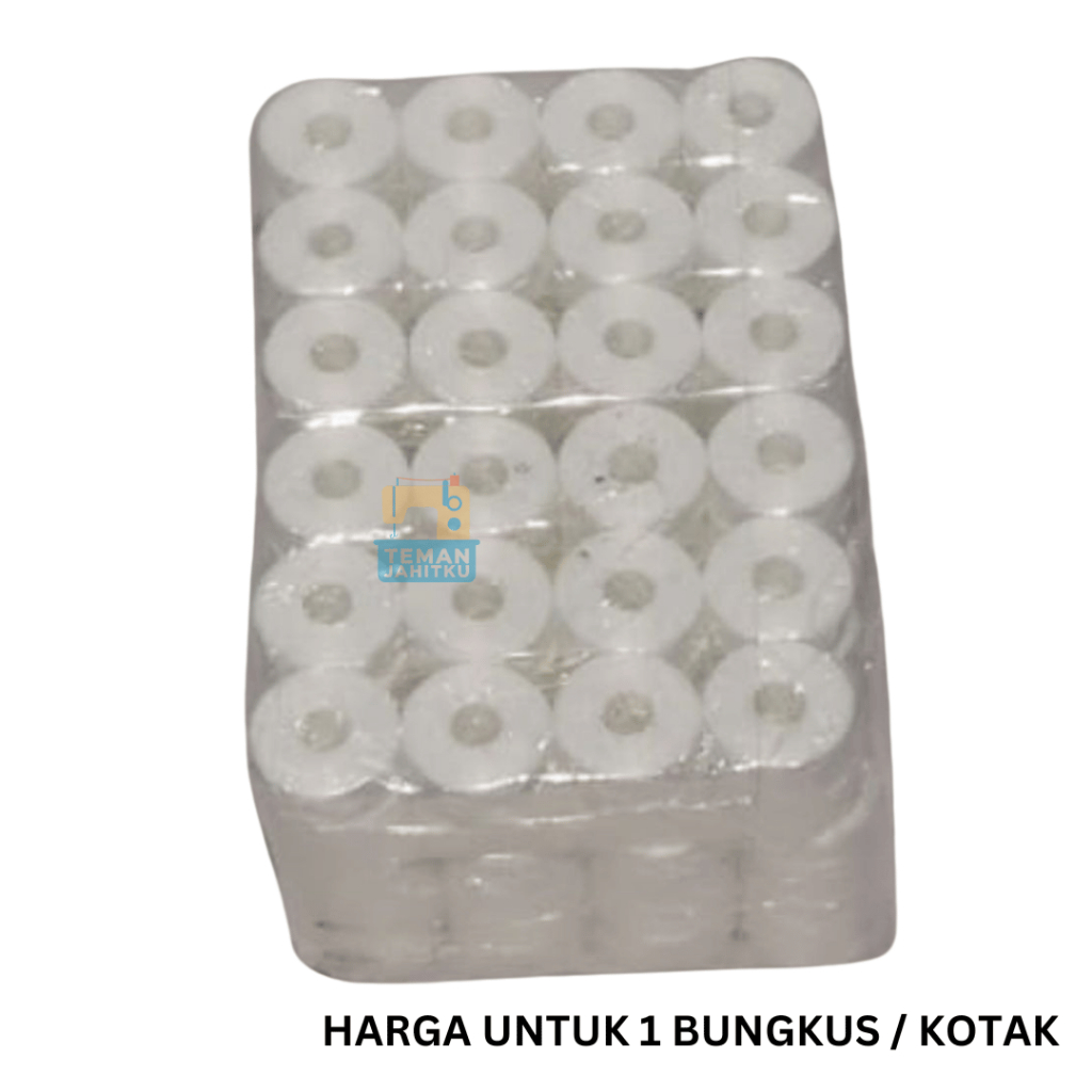 BENANG SEPUL JADI / SPOOL JADI / SEKOCI JADI WARNA PUTIH MESIN JAHIT BORDIR KOMPUTER (1 KOTAK / BUNGKUS = 144 PCS)