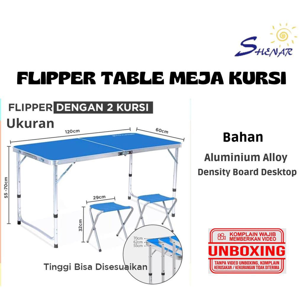 Meja Lipat Jualan Indoor Outdoor Camping Foldable Desk Portable Model Koper Free 2 Kursi Lipat