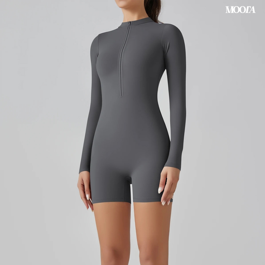 MOOTA Hiro Jumpsuit Olahraga Wanita Lengan Panjang Celana Pendek Ritsleting Depan Yoga Gym Pilates Lari - 217