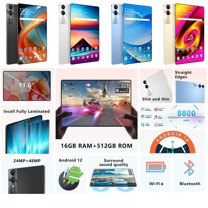 【FREE WIRELESS MOUSE+ KEYBOARD】S12 11.6" TABLET 16GB+1TB PENGALAMAN PRO LAYAKNYA PC | 120HZ OLED REAL COLOR FULLVIEW DISPLAY | ULTRA-TIPI KARTU LAYAR WIFI - UNGU, 128GB