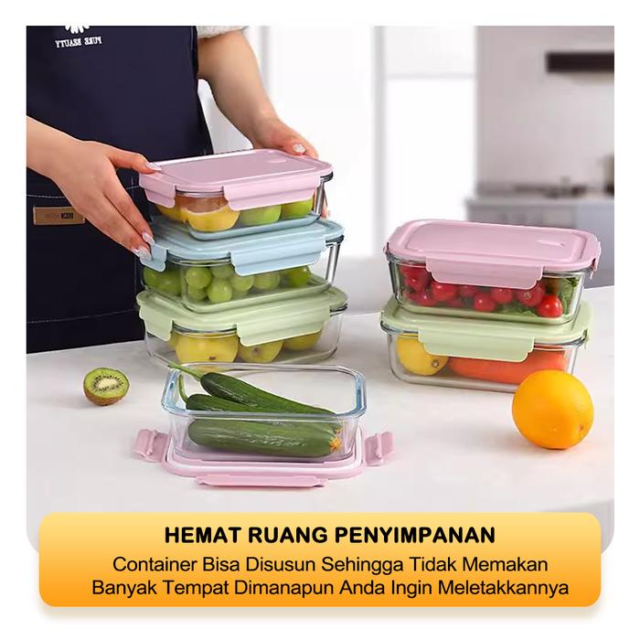 [EXCLUSIVE ISCHAINDYOFC READY] TEXANIA SET FOODBOX KACA - WADAH MAKANAN BISA FREEZER DAN OVEN TUTUP
