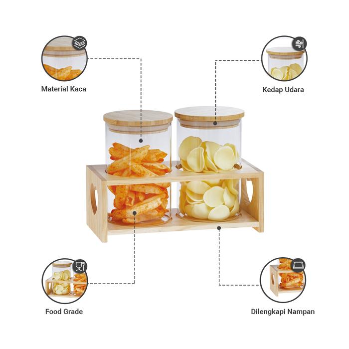 Informa 800 ml Set 2 Pcs Coco Stoples Kaca Dengan Nampan Wadah Makanan Tempat Bumbu Dapur Toples