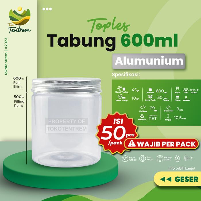 [PER PACK] Toples Tabung 600ml PLASTIK - Toples Cylinder - Toples kue 600 ml Tutup Plastik -