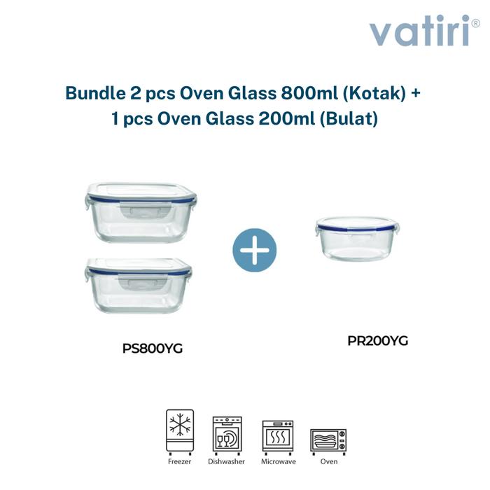 Vatiri Buy 2 Oven Glass Wadah Makan Microwave 800mL Square FREE 1 Oven Glass Wadah MPASI 200ml Round