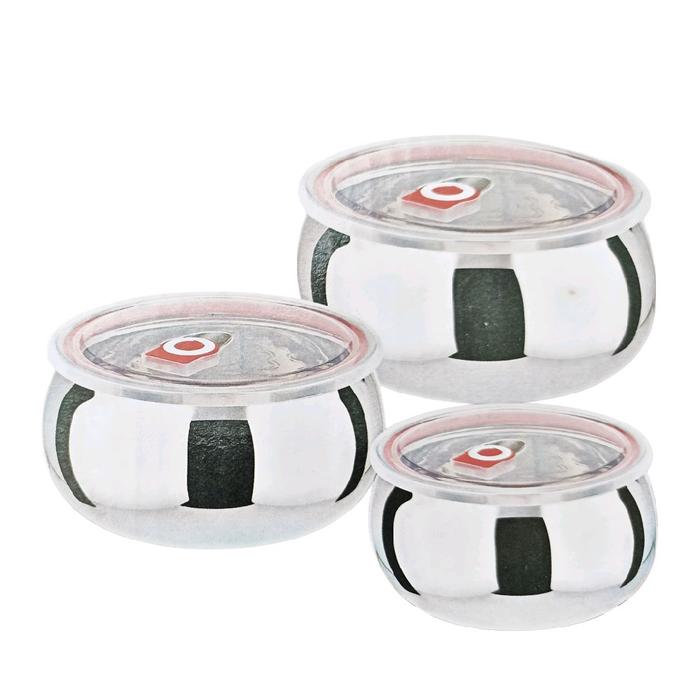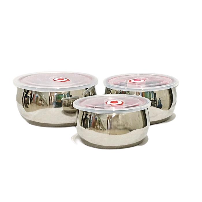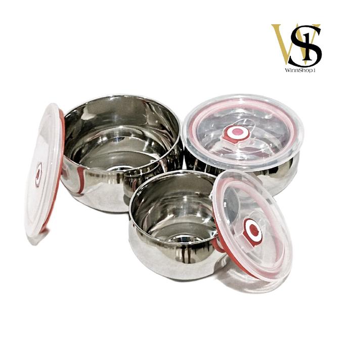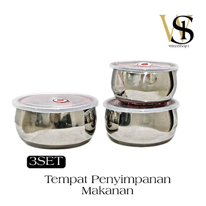 WunShop WS1 Tempat Penyimpanan Makanan Stainless Steel Food Container Anti Bocor 3 Set Double Wall