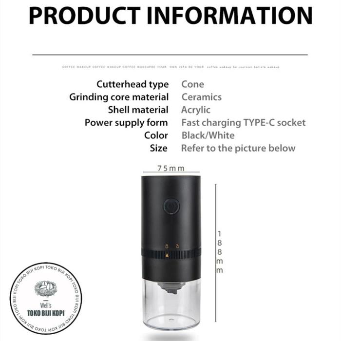 Vocory Penggiling Kopi Elektrik Coffee Bean Grinder Portable 120ml Hitam