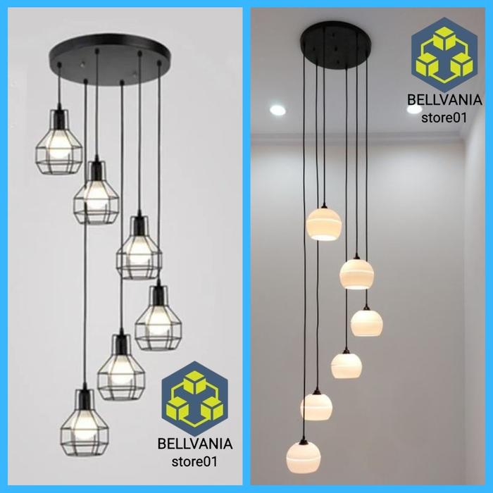 Lampu Gantung Minimalis Kap Lampu Void Tangga Monlight 6 cabng Dekorasi - 6cabng moonlight