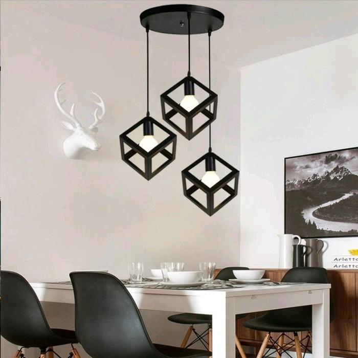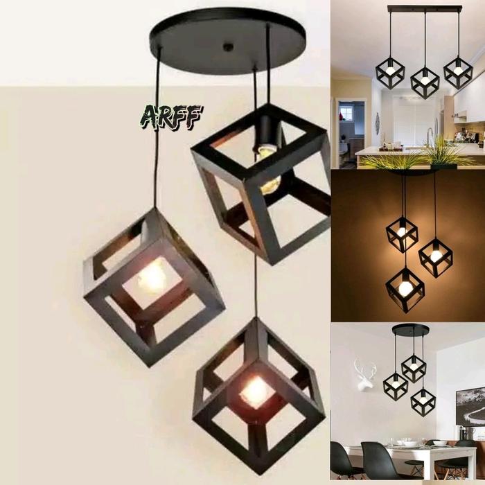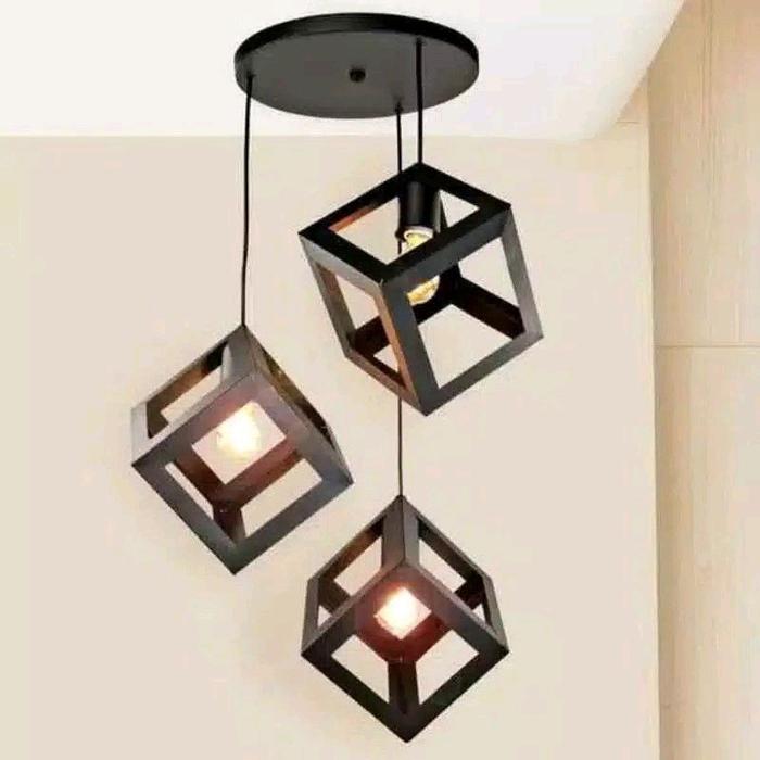 LAMPU GANTUNG KUBUS 3inch LAMPU GANTUNG MINIMALIS Set - kubus base bulat