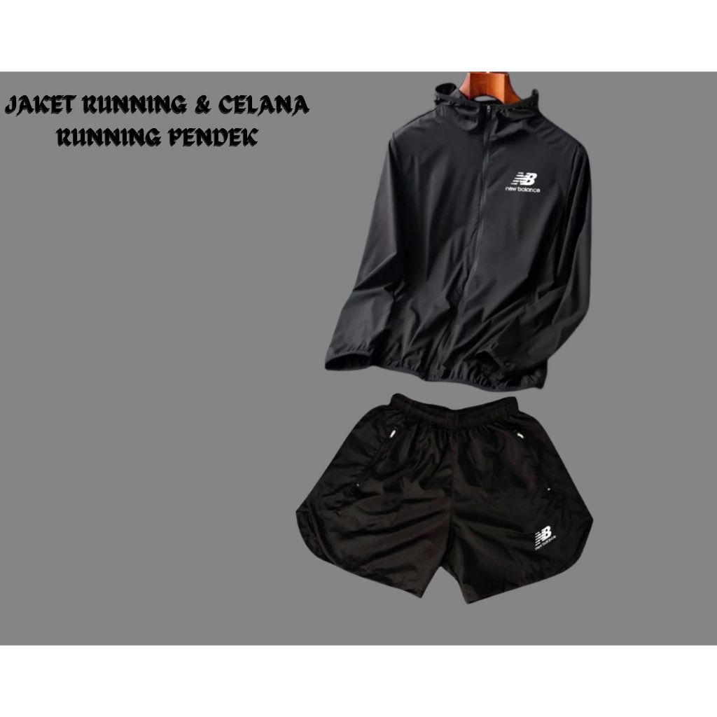 2in1 Stelan Olahraga Outdoor Latihan Lari Jaket Sauna Suit + Celana Pendek Parasut Saku Resleting Bahan Ringan Pria Wani