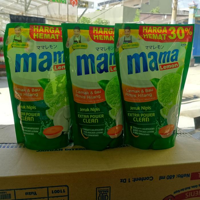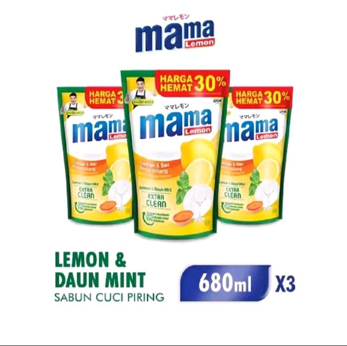 PAKET 3 PCS MAMA LEMON JERUK NIPIS/LEMON SABUN CUCI PIRING POUCH 680 ML - JERUK NIPIS, 3 PCS