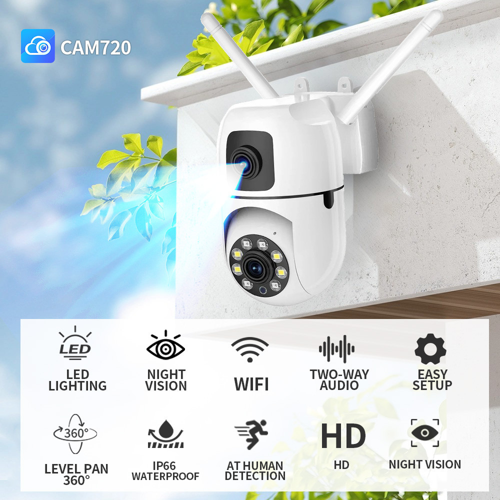Camtrix Cam720 Dual Lens CCTV Camera Connect Cellphone 8MP HD Wireless WIFI outdoor with night vision Two-Way Audio Wate