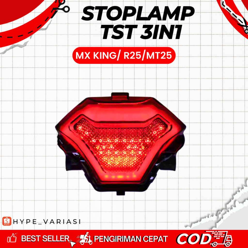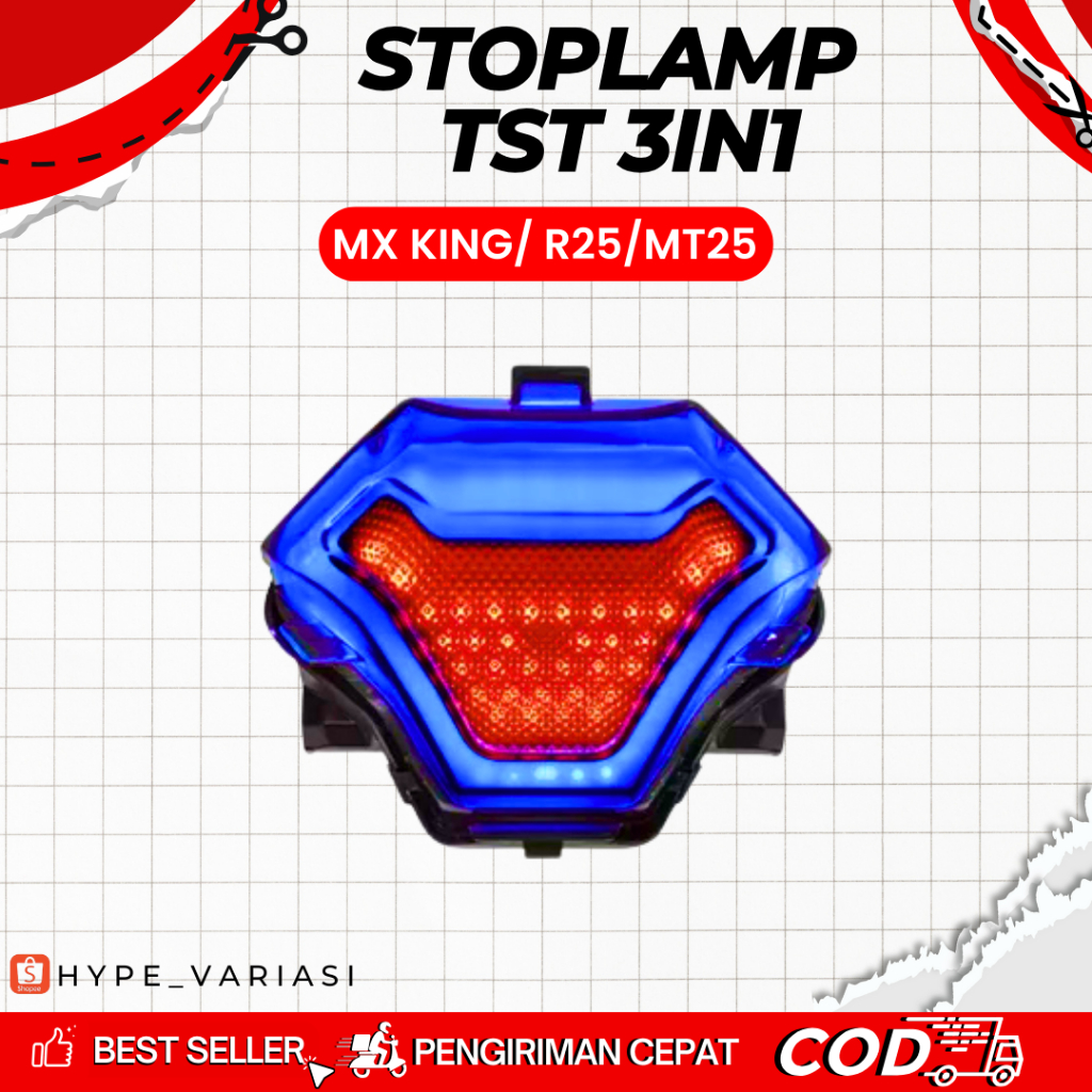 LAMPU BELAKANG STOPLAMP TST 3IN1 R25 MT25 MX KING LED MERAH PUTIH BIRU