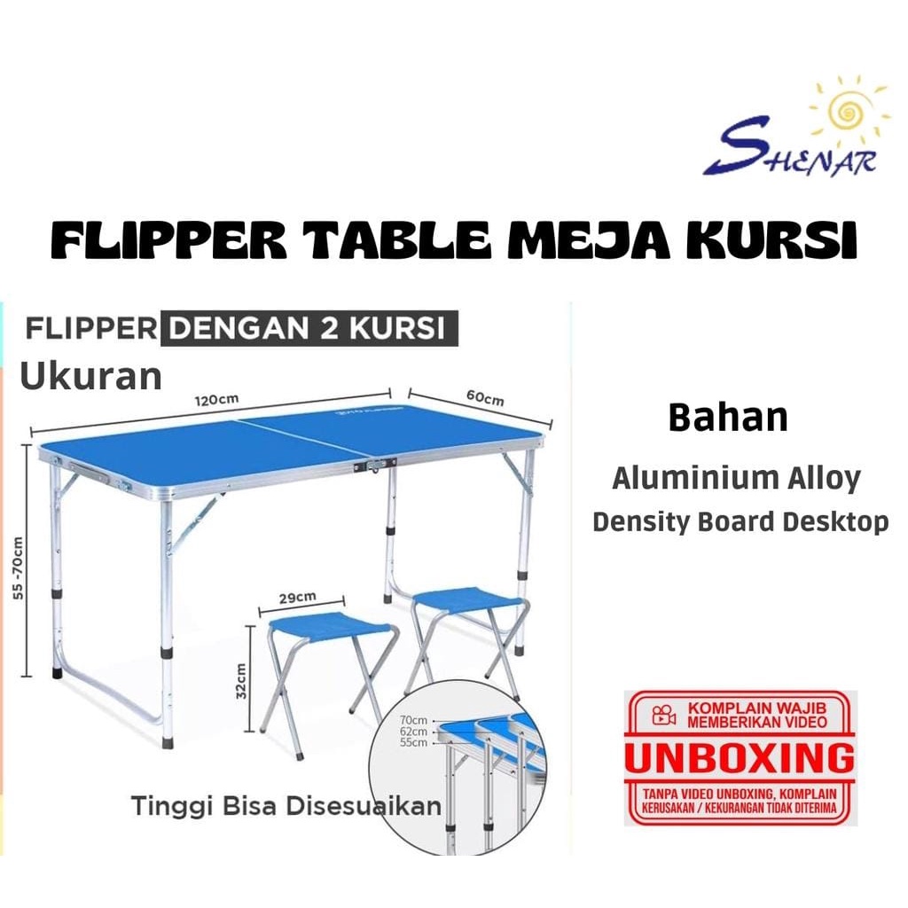 Meja Lipat Jualan Indoor Outdoor Piknik Camping Foldable Desk Portable Model Koper Free 2 Kursi Lipat