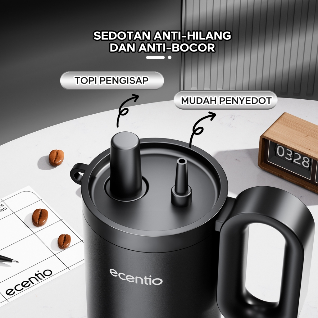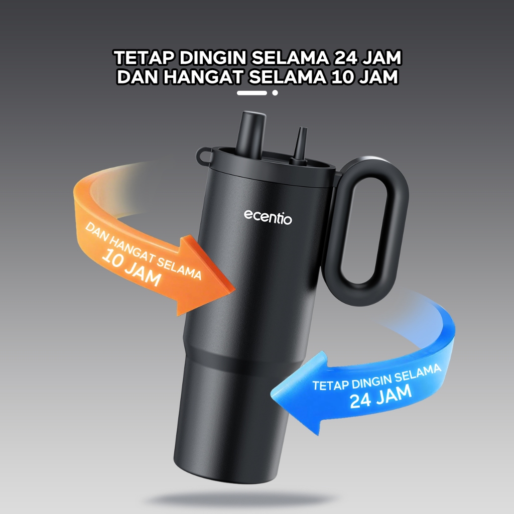 ecentio Klasik Tumbler Stainless 750ML Tumbler Sedotan Dengan Tutup Vacuum Insulated Tahan Panas Dingin 24 jam Tumbler Es Batu Tahan Lama With Handle Portable Tumbler Termos