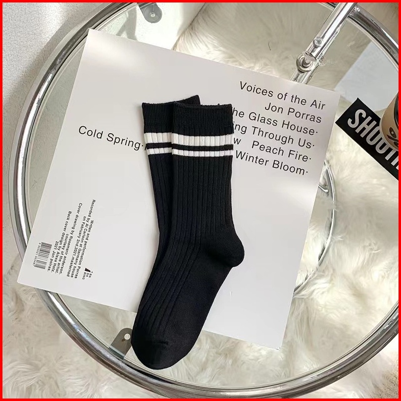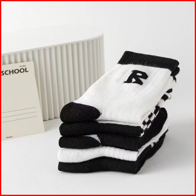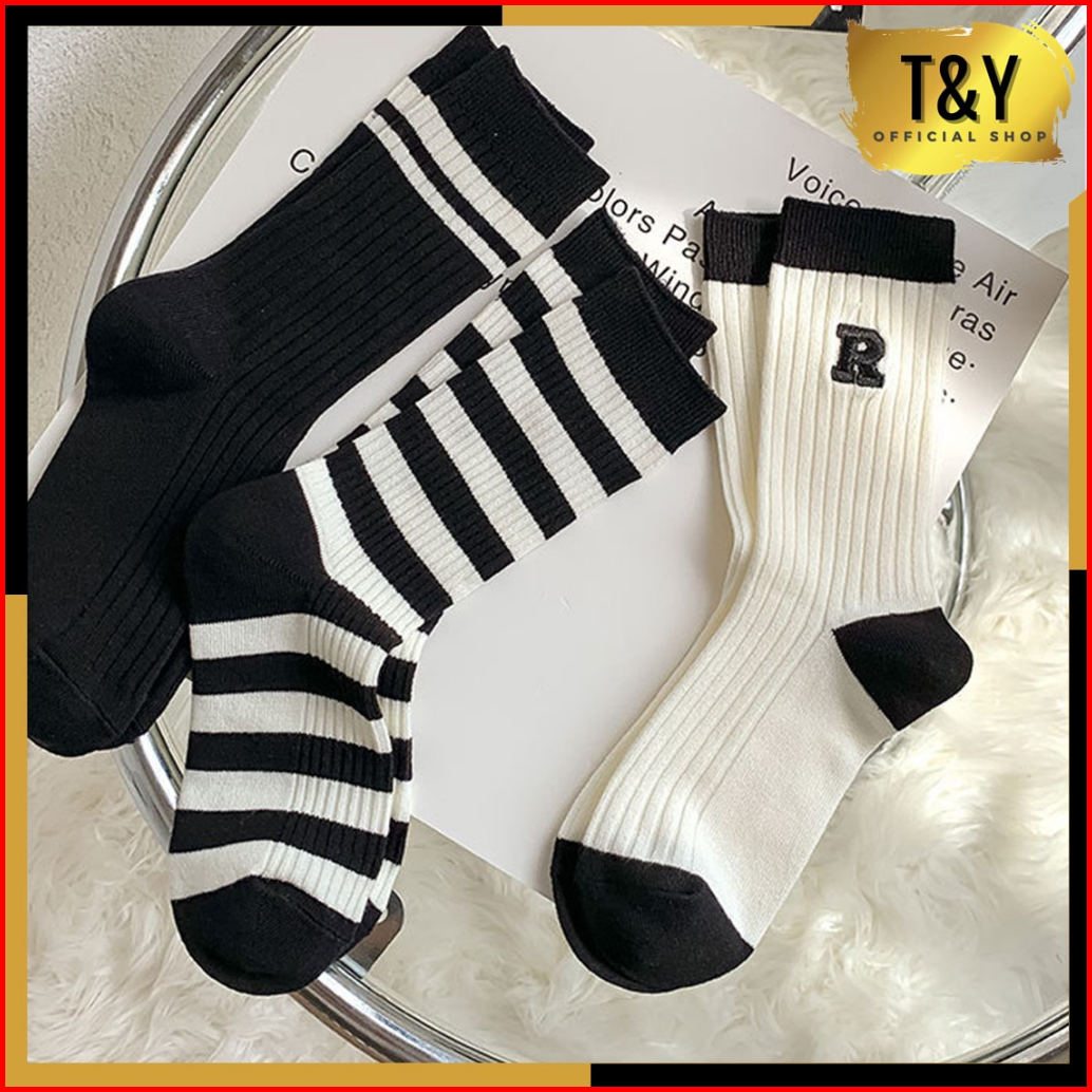 T Y Kaos Kaki Panjang Letter R 6756 Strip Garis Hitam Putih Kaos Kaki Panjang Korean Style Diatas Mata Kaki Kaos Kaki Mi