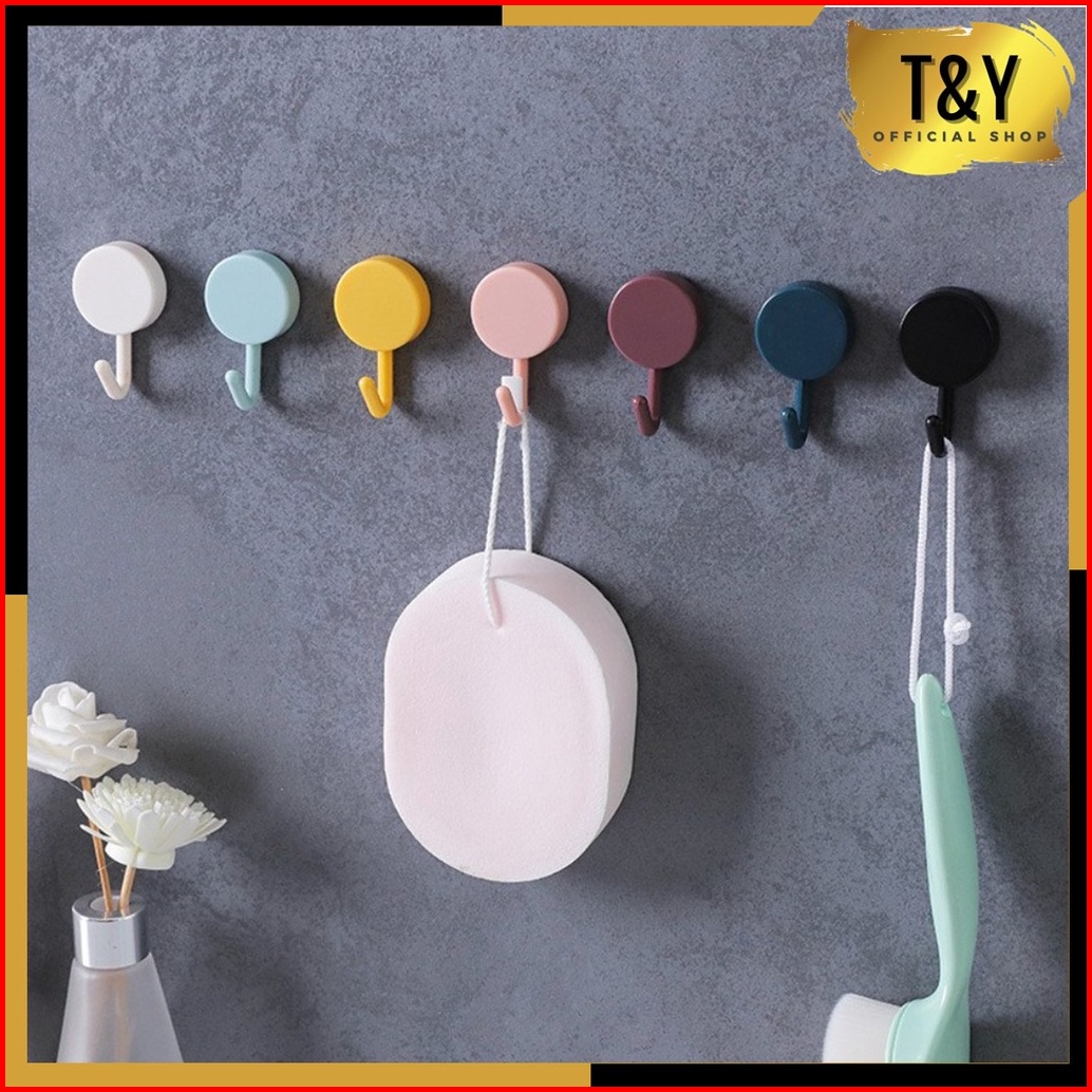 T Y Gantungan Hook Bulat Polos Tempel Tembok Wall 1pcs Hook Stiker Dinding Kail Tempel Kuat Tembok Warna Serbaguna