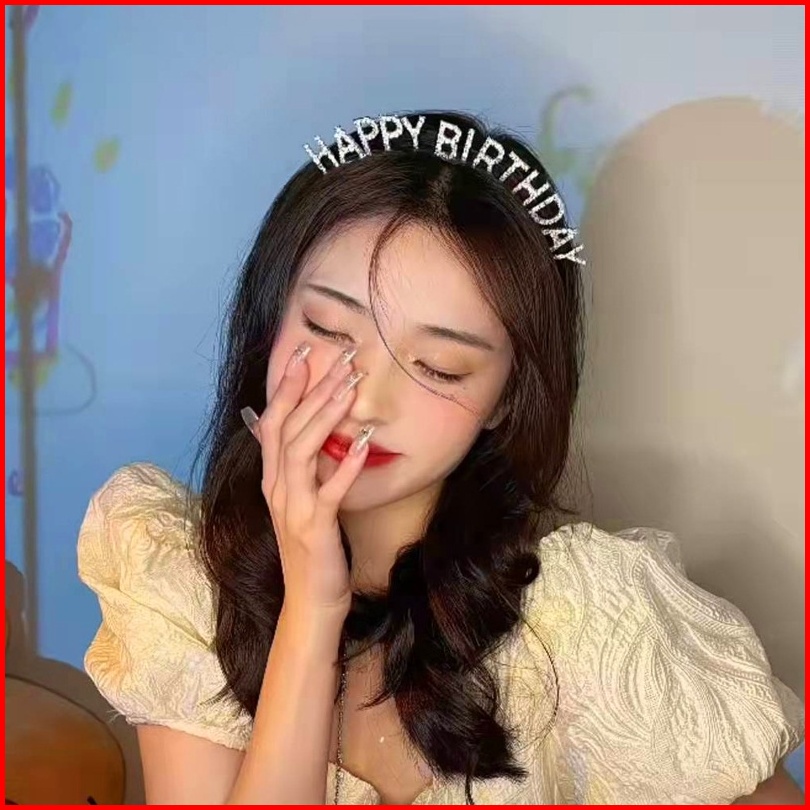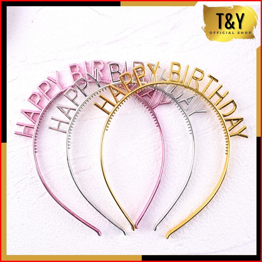 T Y Bando Happy Birthday Desain Anti Slip Gaya Korea Headband Ulang Tahun Bahan Plastik Transparan Warna Warni Bandana H