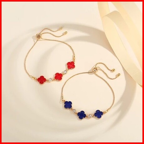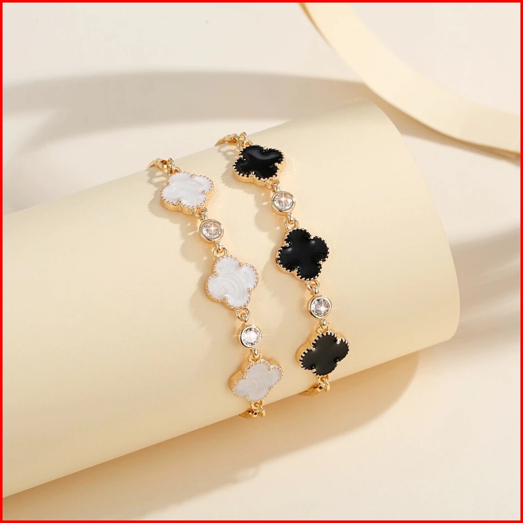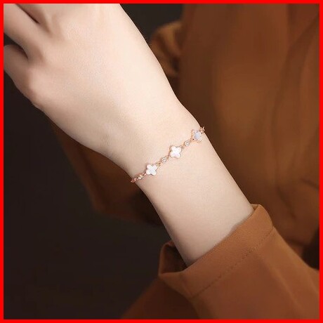 Pa Gelang Serut Fashion Wanita Clover Permata Titanium Elegan Gl020