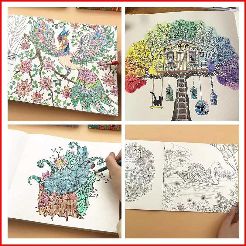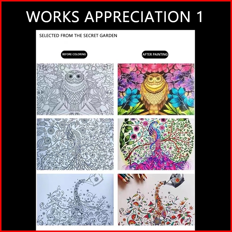 Secret Garden Drawing Book 24 Pages Buku Mewarnai Stress Coloring Book Buku Warna Untuk Pelatihan Konsentrasi Anak-anak