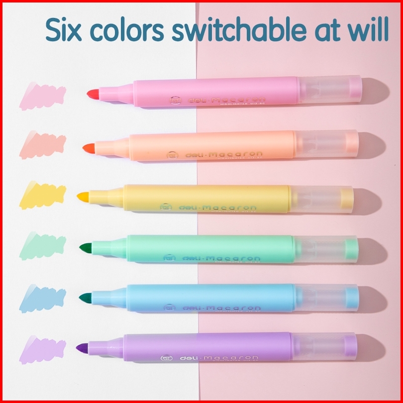 Deli Highlighter Penanda Warna Pastel 1 Set Isi 6 Warna Cerah Dan Soft Kemasan Mika Lucu Eu12-6c