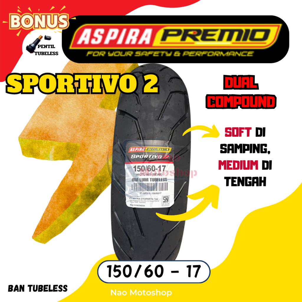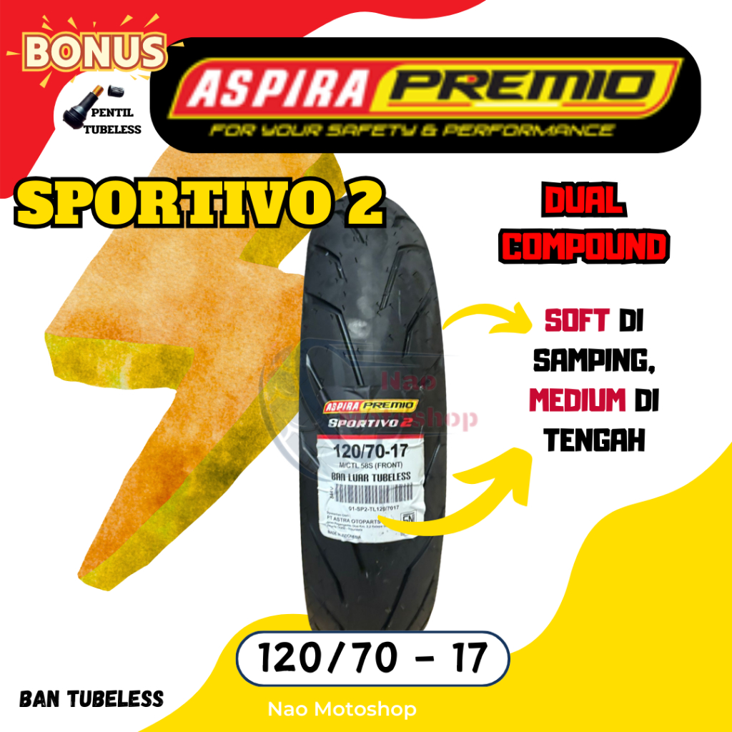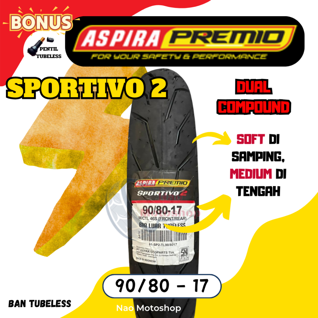 BAN ASPIRA PREMIO SPORTIVO 2 TUBELESS MATIC RING 17 90/80 100/80 110/70 120/70 17