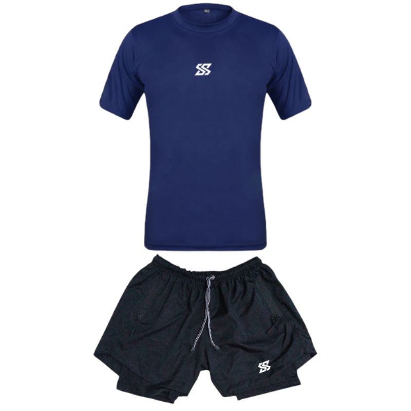 Stelan Baju Manset Lengan Pendek Dan Celana Parasut 2in1 Pendek Olahraga Gym Fitness Voli Lari Running Badminton Pria Wa