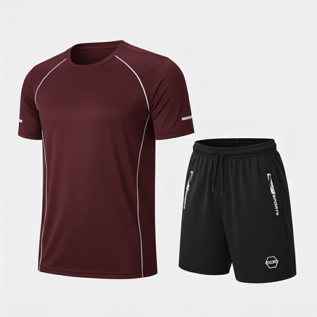 1 Set Stelan Pakaian Olahraga Pria Sport Kaos + Celana Pendek ada kantong Kanan Kiri