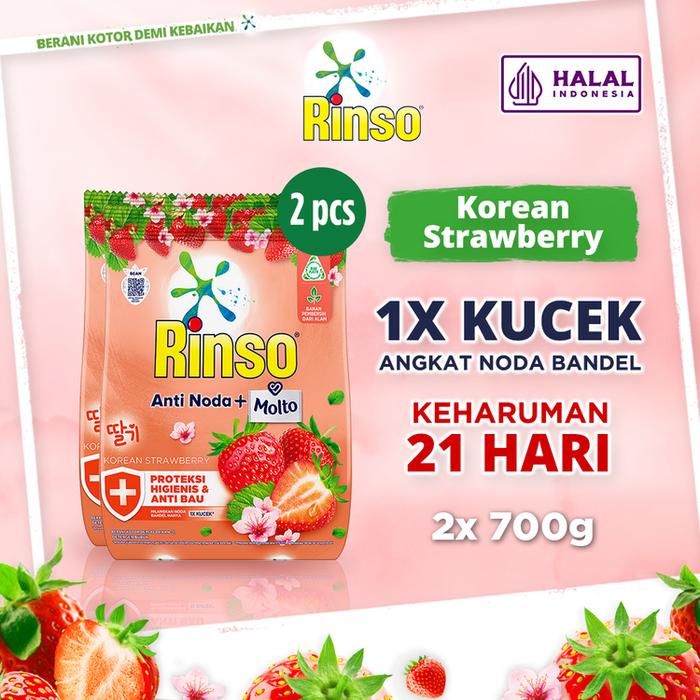 RINSO SENSIFRESH DETERGENT BUBUK DETERJEN WANGI SEGAR 48 JAM KOREAN STRAWBERRY 700GR TWINPACK