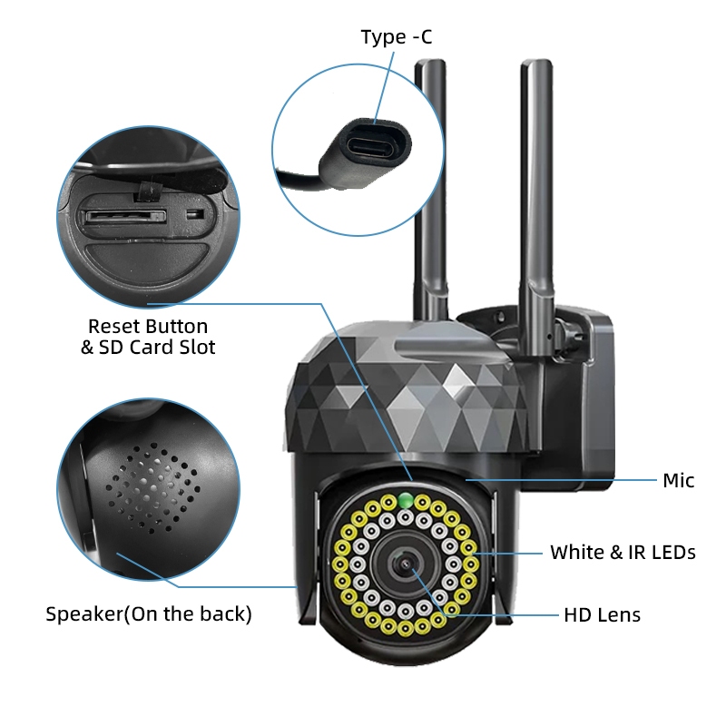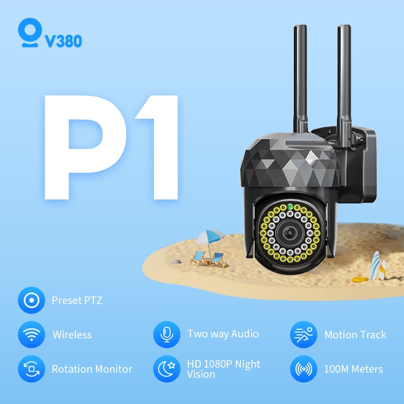 [Garansi satu tahun]V380 CCTV P1hitam Outdoor Tahan Air Penglihatan Malam CCTV nirkabel Camera IP Wifi Alarm Kamera Keam