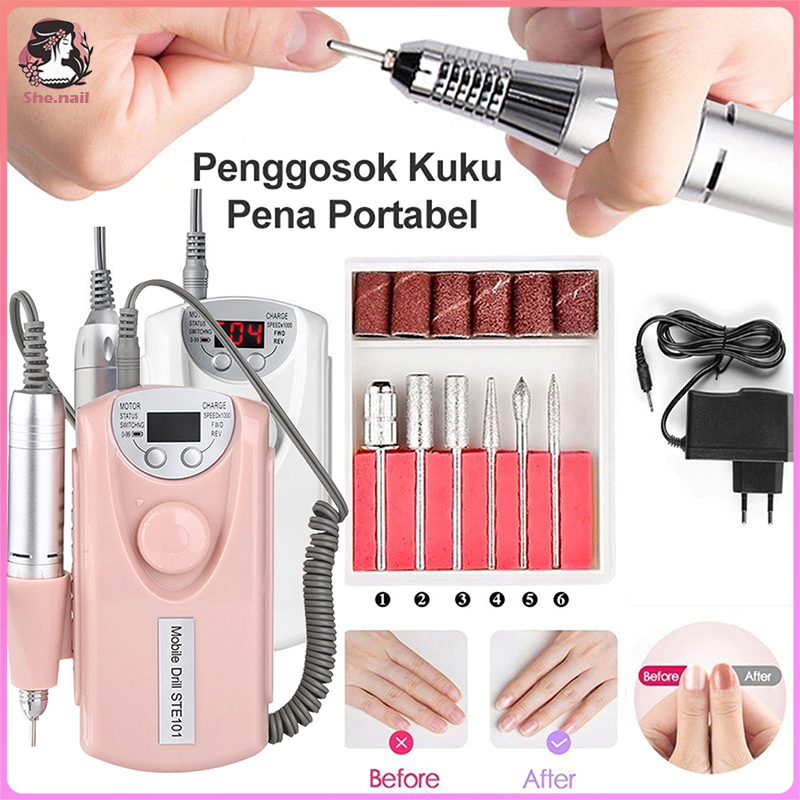She.Nail Electric Nail Drill Grinding Alat Kikir Kuku Elektrik Portable Rechargeable 30000 RPM/ Nail Drill Polisher Mesi