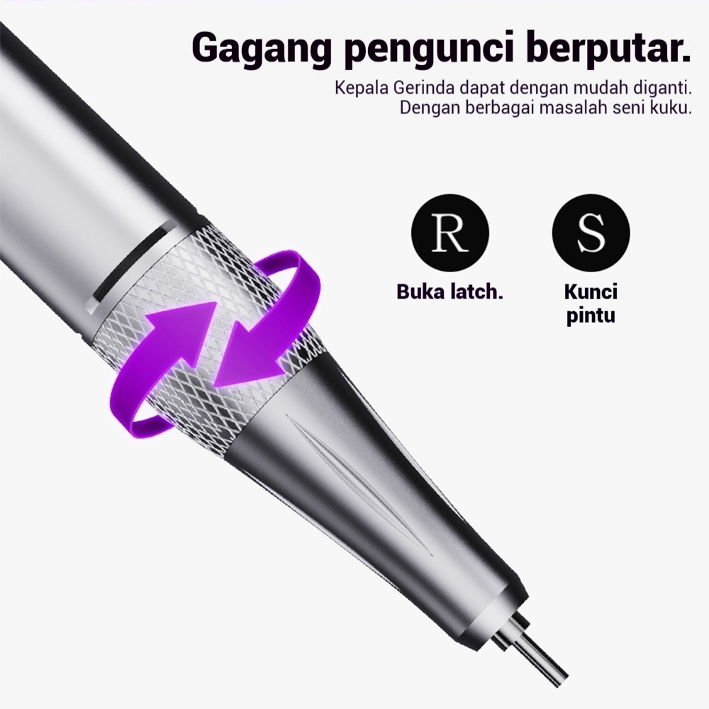 INSMART Alat Kikir Kuku Elektrik 50000RPM Portable Elektrik Nail Drill Rechargeable Nail Drill Polisher Grinding Untuk M