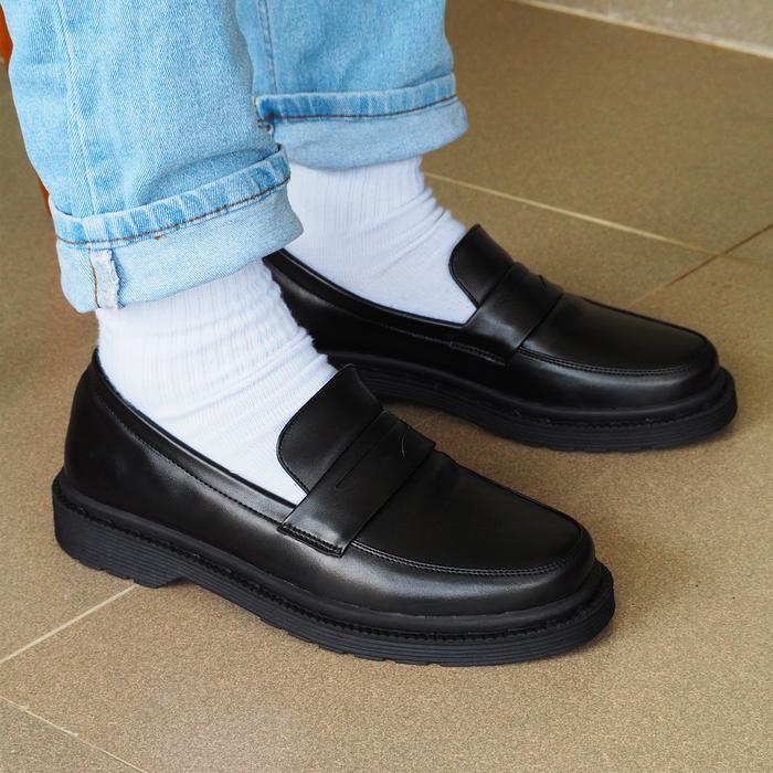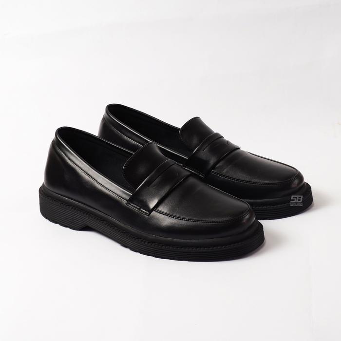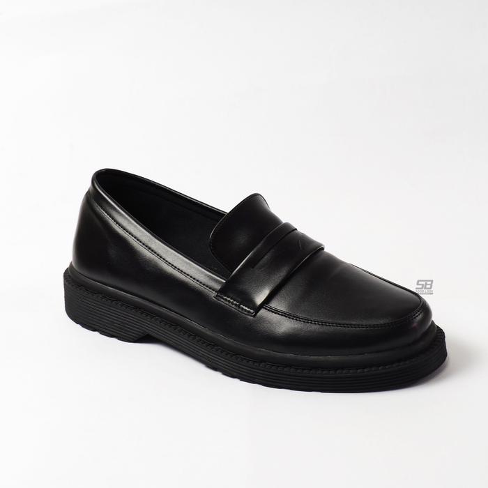 SEPATU PRIA LOAFERS DOCMART SEPATU SLIP ON PRIA SEPATU HITAM COWOK SEPATU PRIA SLIP ON LOAFERS FORMAL | SB AIDEN BLACK