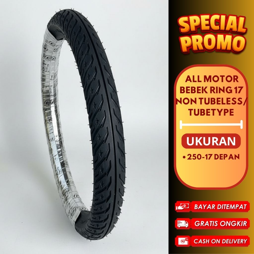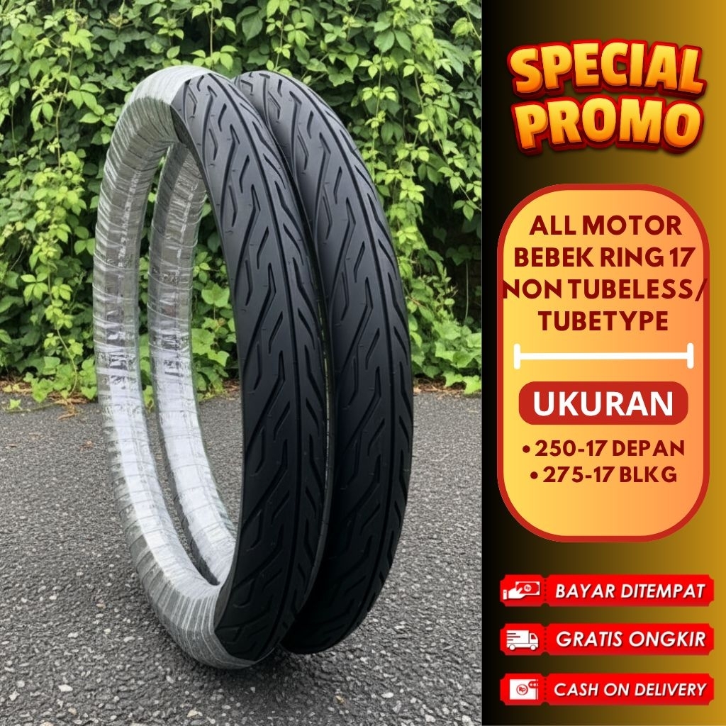Ban Motor Ring 17 Ukuran 225-17, 250-17, 275-17 & 300-17 Motor Bebek Supra Smash Jupiter Revo