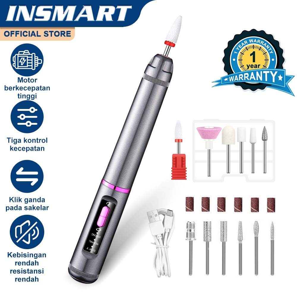 INSMART Drill Nail Art Elektrik Nail Drill Machine 45000RPM Alat Kikir Kuku Portable Nail Drill Polisher Wireless Nail D