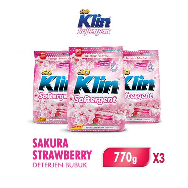 SOKLIN DETERJEN BUBUK SAKURA STRAWBERRY 770GR X 3 PCS