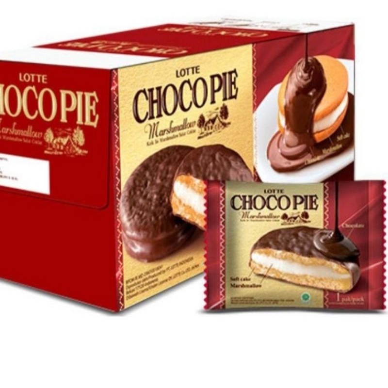 LOTTE CHOCO PIE MARSHMALLOW LUE COKLAT 336 GRAM ISI 12 PC X28 GRAM